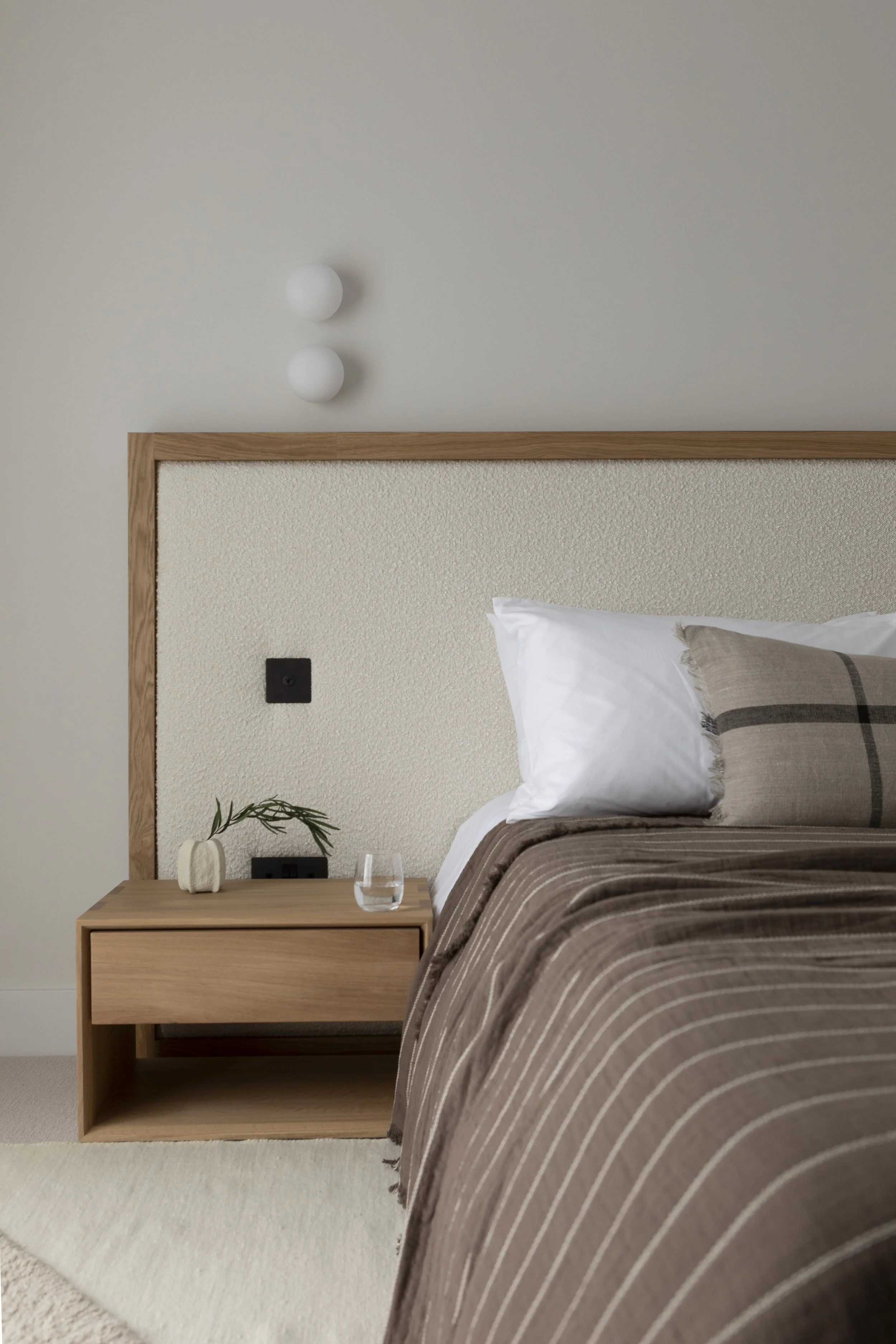 Pilgrim’s Rest, nestled in the rolling hills of Ceres, Fife, was a new build that arrived as a blank canvas. The clients wanted a home that was both beautiful and practical - a countryside retreat they could enjoy themselves, but also suitable for short-term rental. With a contemporary Scandinavian aesthetic in mind, they were drawn to neutral tones, light, airy spaces, and thoughtful touches that would give the home warmth and character. As they put it, “We were looking for a designer who had previous work reflecting our aesthetic, and a team that could support us remotely. Kate and her team hit all the high points.”