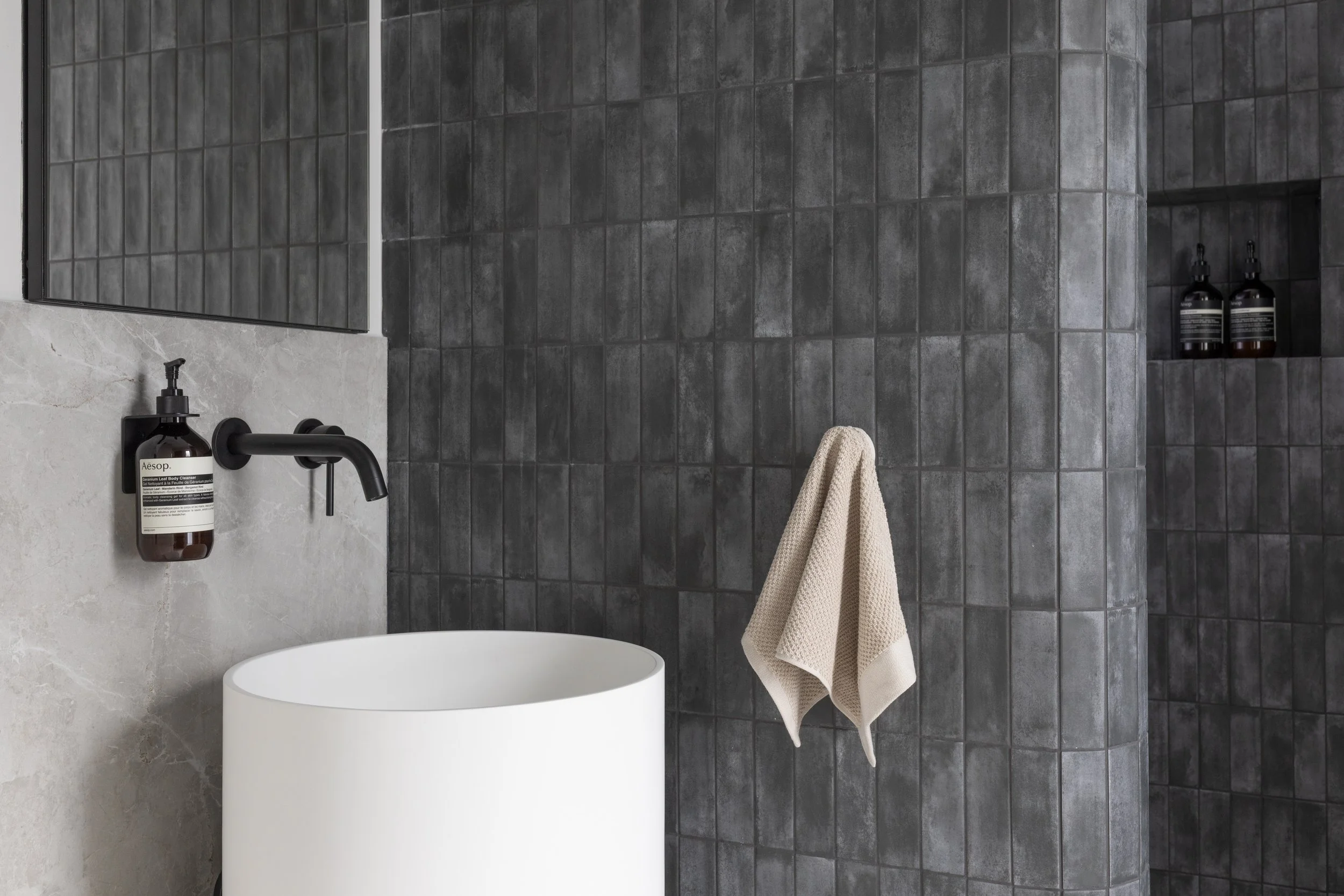 Bathrooms are hardworking spaces, so materials need to perform as well as they look.
